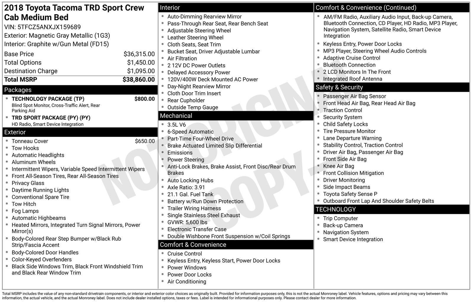 Our Toyota is equipped with the Star Safety System, advanced airbags, adaptive cruise control, lane departure warning, and a backup camera to offer you additional peace of mind. Our Tacoma TRD Off-Road is primed to exceed your demands and is built for fun. Save this Page and Call for Availability. We Know You Will Enjoy Your PETERSON CHEVROLET Test Drive Towards Ownership! Call us today 208-323-5000 to schedule your VIP test drive!
