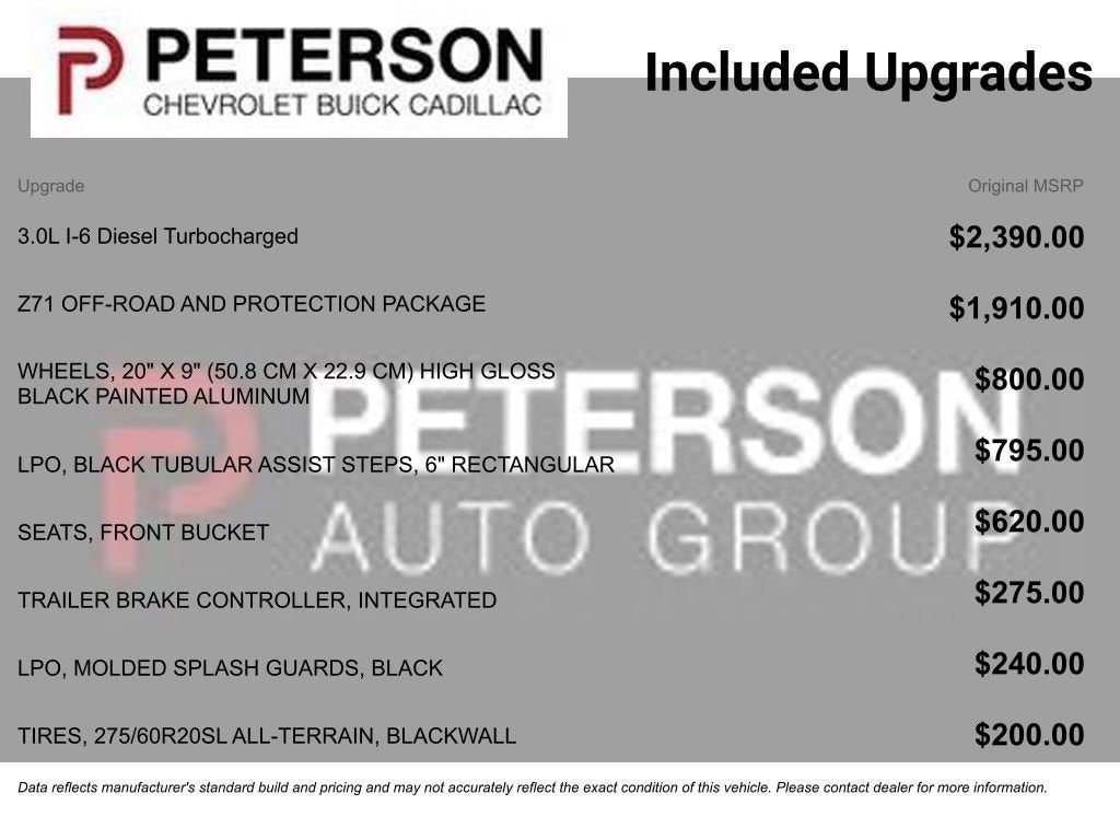 Recent Arrival! CarBravo Certified! See Dealer for Details!Arrive in style with our No Accidents Reported, Diesel powered White 2023 Chevrolet Silverado 1500 RST Crew Cab 4X4 that is here to show off! Motivated by a TurboCharged 3.0 Liter DuraMax Diesel 6 Cylinder generating 305hp and 495lb-ft of torque to a 10 Speed Automatic transmission for street-savvy performance. This Four Wheel Drive truck is also ready to rock with an auto-locking rear differential and AutoTrac transfer case, and it sees nearly 27mpg on the highway. Silverado styling is on display with LED headlamps, fog lamps, alloy wheels, black recovery hooks, an EZ Lift power lock/release tailgate, a rear CornerStep bumper, cargo-bed lighting, and a trailer hitch with Hitch Guidance.Once inside, our RST cabin can keep you comfortable and looking good with heated cloth front seats, 10-way power for the driver, a heated-wrapped steering wheel, dual-zone automatic climate control, cruise control, remote start, and keyless access/ignition. High-tech infotainment helps you connect with a 12-inch driver display, a 13.4-inch touchscreen, wireless Android Auto/Apple CarPlay, Google Built-In, voice control, WiFi compatibility, Bluetooth®, and a six-speaker sound system.Chevrolet promotes peace of mind with intelligent features like forward collision warning, automatic braking, an HD rearview camera, lane-keeping assistance, and more. Now check out our Silverado RST for yourself and take charge of your world! Save this Page and Call for Availability. We Know You Will Enjoy Your PETERSON CHEVROLET Test Drive Towards Ownership! Call us today 208-323-5000 to schedule your VIP test drive!